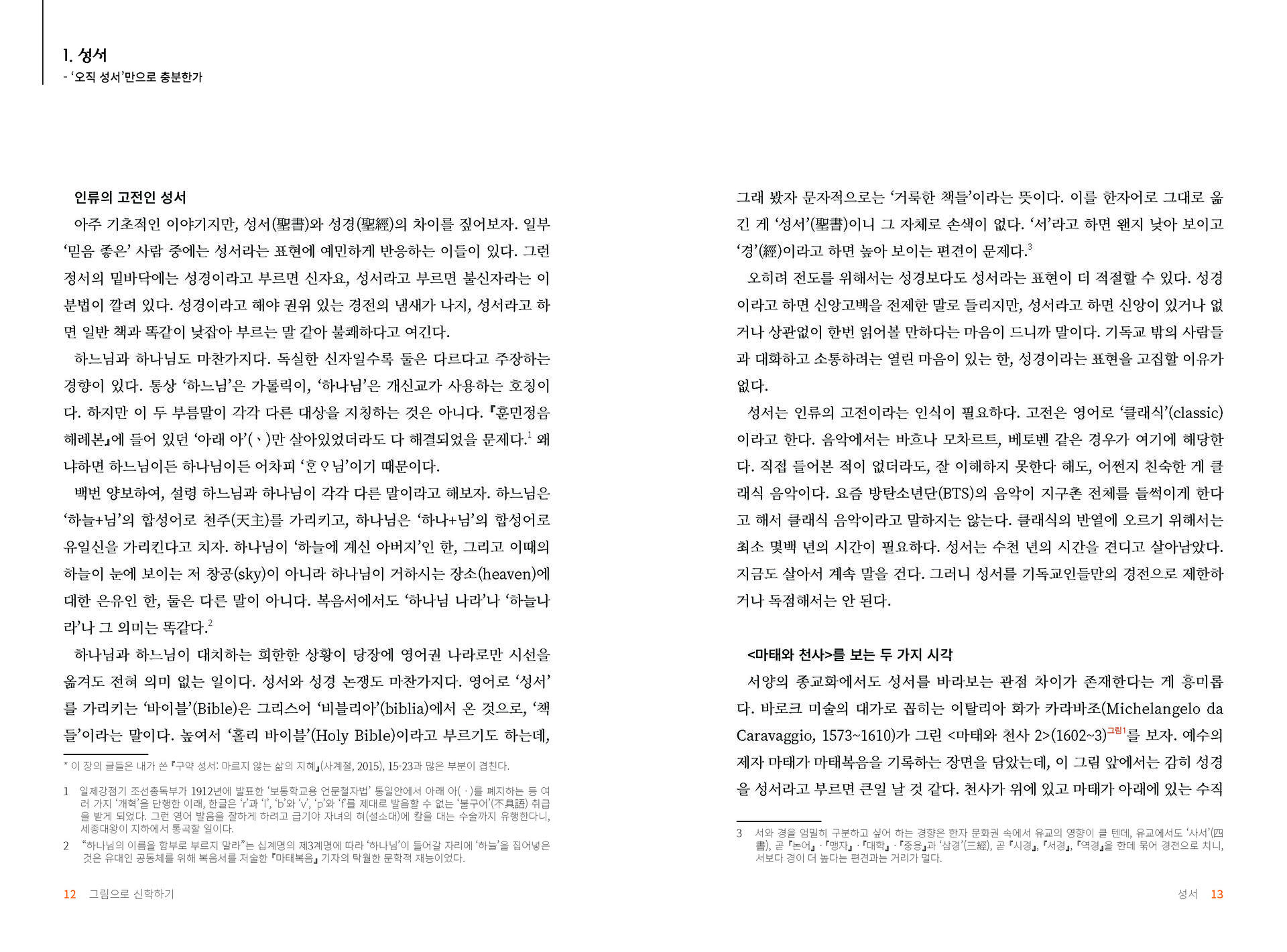 그러니까 말씀은 눈으로 읽는 데서 그치면 안 된다. 귀로 듣고 흘려버려서도 안 된다. 성서에 기록된 말씀은 일차적으로 사건인 까닭이다. 인간을 찾으시는 하나님이 세상에서 일으키는 사건이다. 빈센트의 성서 정물화는 이 점을 일깨운다. 종교적 위선에 찌든 신자들에게 몸으로 말씀을 살아내라고 주문한다. 기형도 시인의 시구를 패러디하면, 밑줄을 그어야 하는 건 “성경이 아니라 생활”이다
